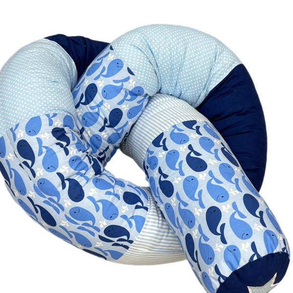 Einzelstück 2m50m ! Bettschlange Hellbau / dunkelblau Wale